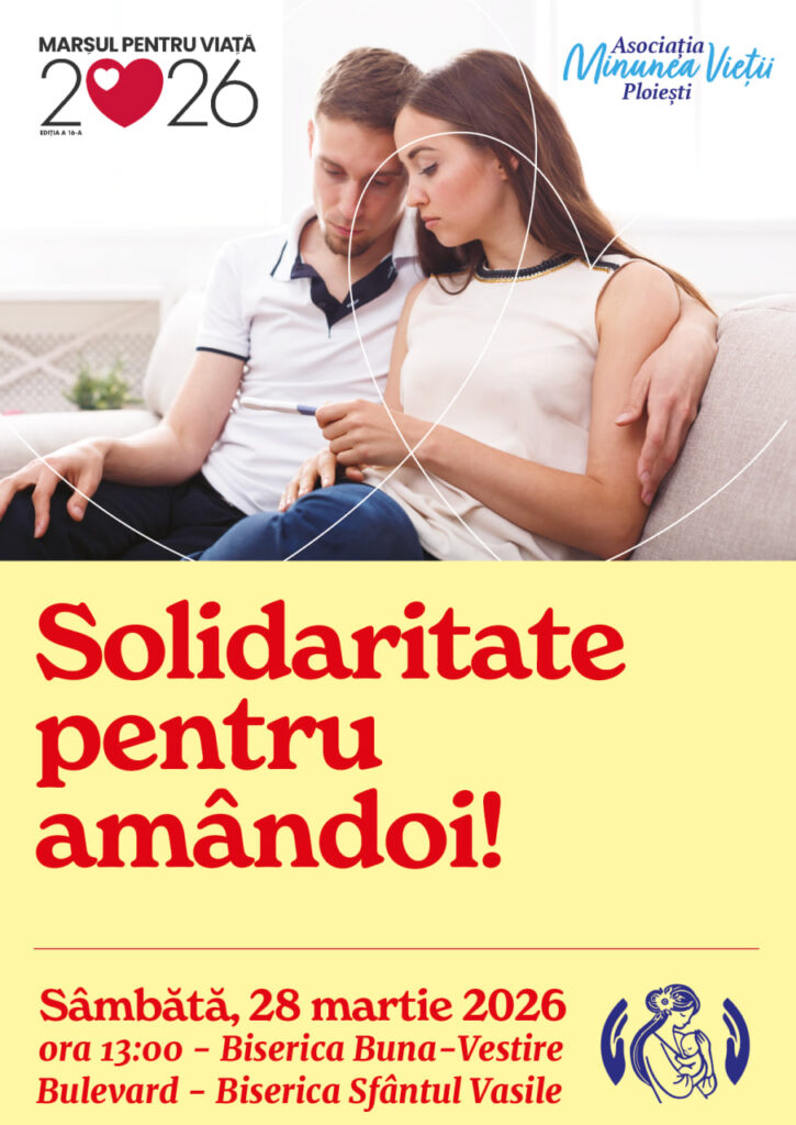 Pentru re-afirmarea și confirmarea anuală a adeziunii noastre față de această valoare fundamentală, dar și pentru a oferi înțelegere și susținere oricărei femei în criză de sarcină și a încuraja asumarea și acceptarea maternității și a paternității ca ipostază unică în fiecare situație de început al unei noi vieți, Asociația „Minunea Vieții” organizează și anul acesta manifestarea numită „Marșul pentru Viață” din Ploiești cu tema „Solidaritate pentru amândoi!”, care se va desfășura pe data de 28 martie, începând cu ora 13, având ca punct de plecare Biserica „Buna Vestire”.